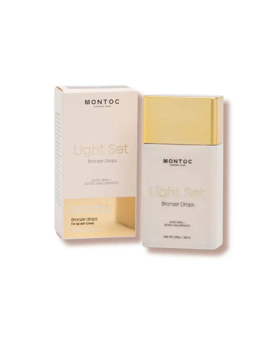 Light Set Bronzer Drops es un bronceador líquido de maquillaje profesional diseñado para todo tipo de piel. Su fórmula ligera y adaptable ofrece un bronceado natural y duradero para rostro y cuerpo, ideal para quienes buscan un efecto bronceado sin complicaciones.