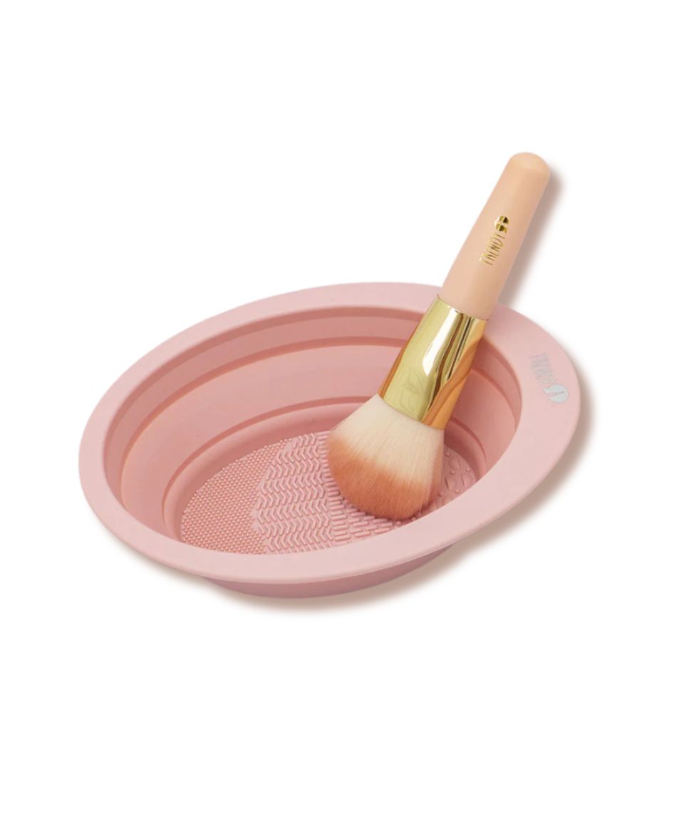 Hecho de silicona flexible con ventosas antideslizantes, esta herramienta hace que lavar tus brochas, esponjas y borlas sea rápido, fácil y hasta divertido.