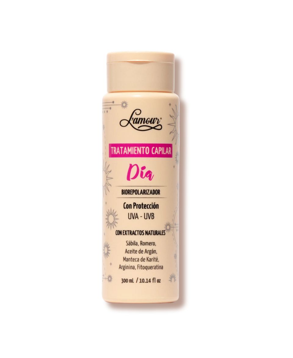 Nuestro Tratamiento Día es tu escudo diario contra las luces naturales y artificiales. Protege el cabello de los rayos UV, mientras lo nutre y repara intensamente, evitando la resequedad y el maltrato en tu cabello.